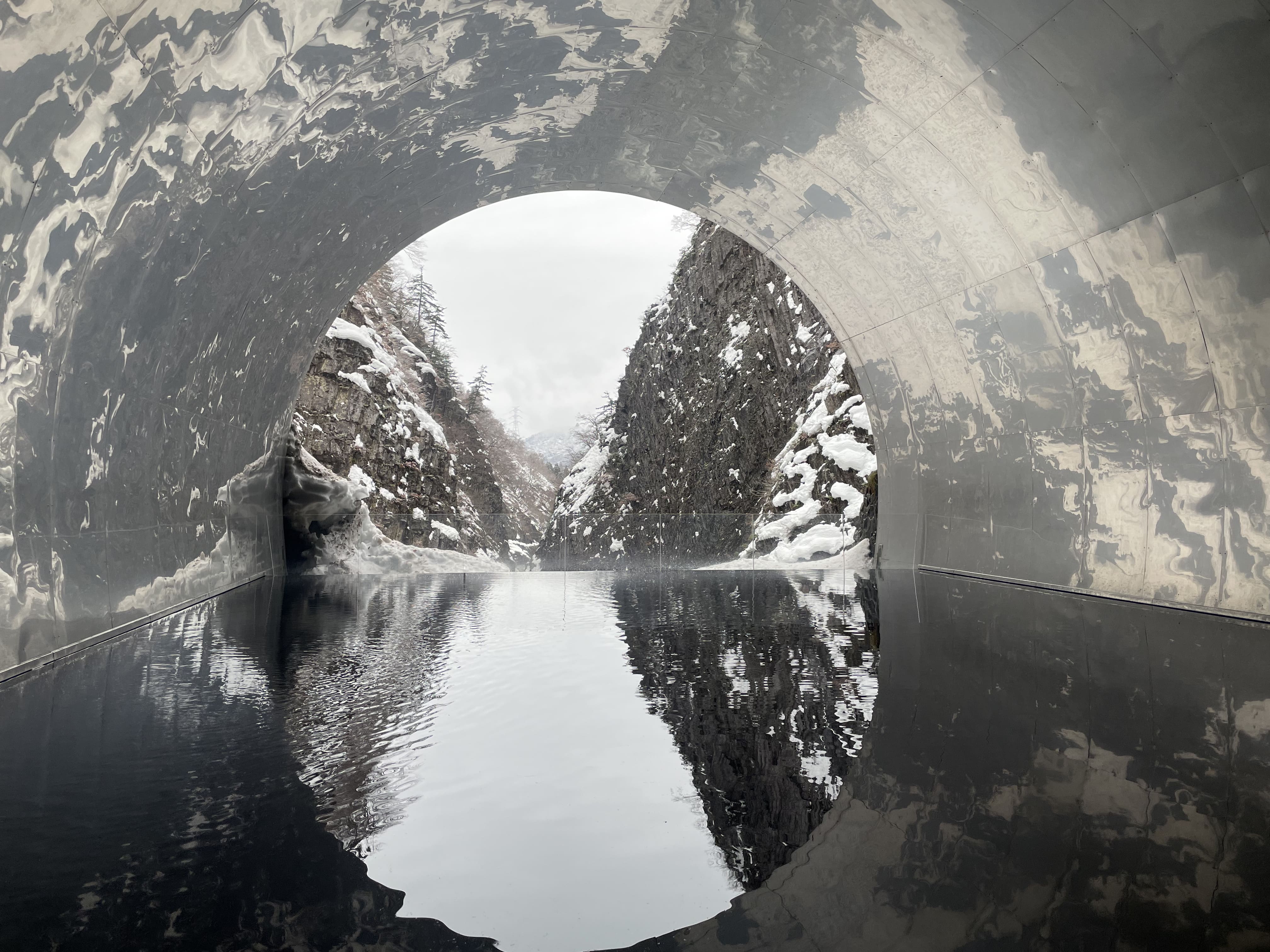 雪舞う冬の清津峡へ。光のトンネルと水鏡が織りなす幻想的な絶景。
